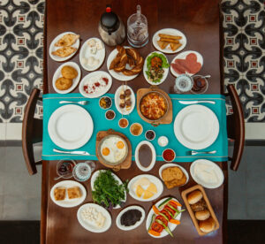 Bei arabischen Leckereien können die BesucherInnen hier verweilen, sich austauschen und kennenlernen und sich über die Angebote im MGH informieren.